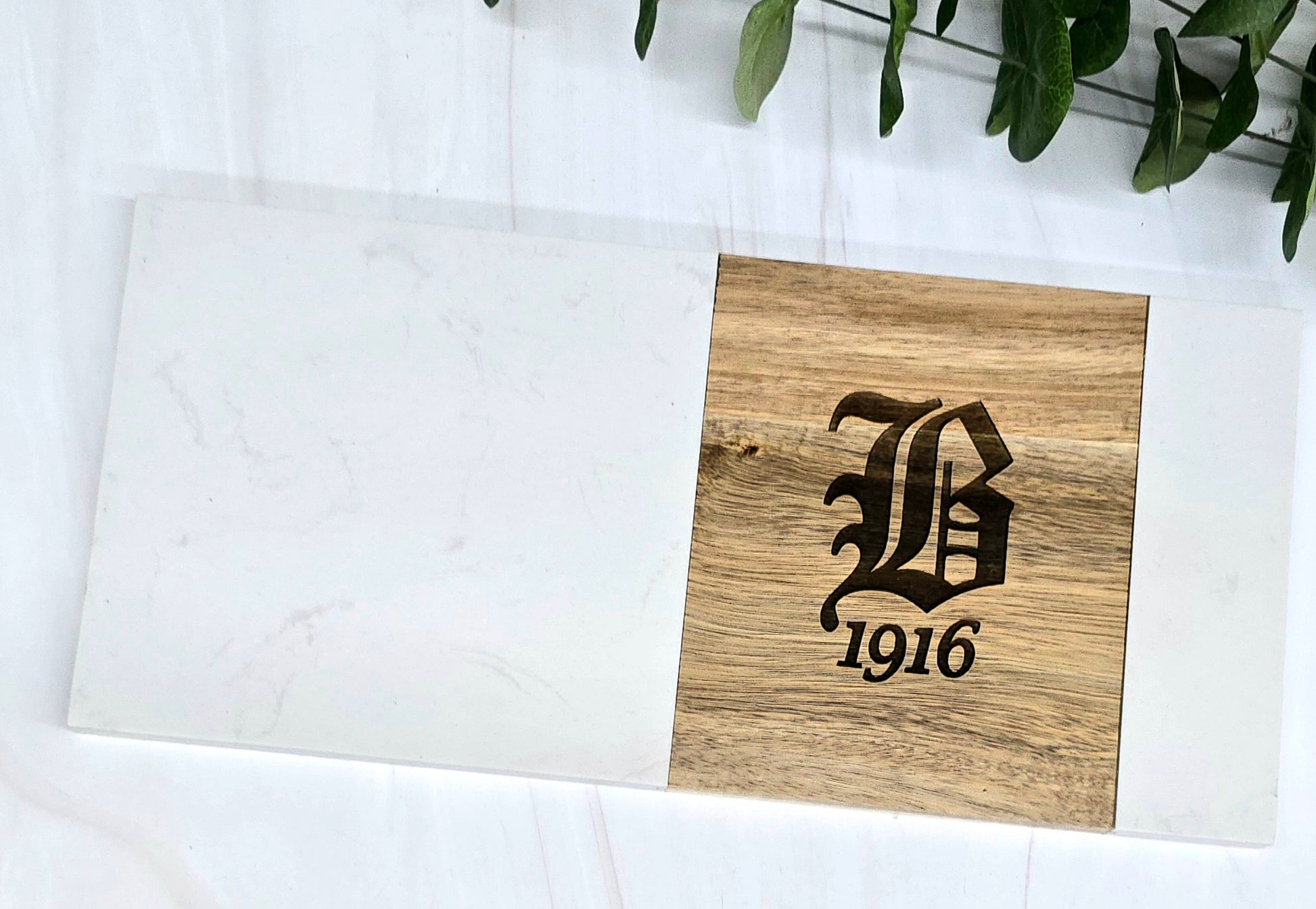 * 1 Personalized Marble Acacia cutting board - 15" X 7"
